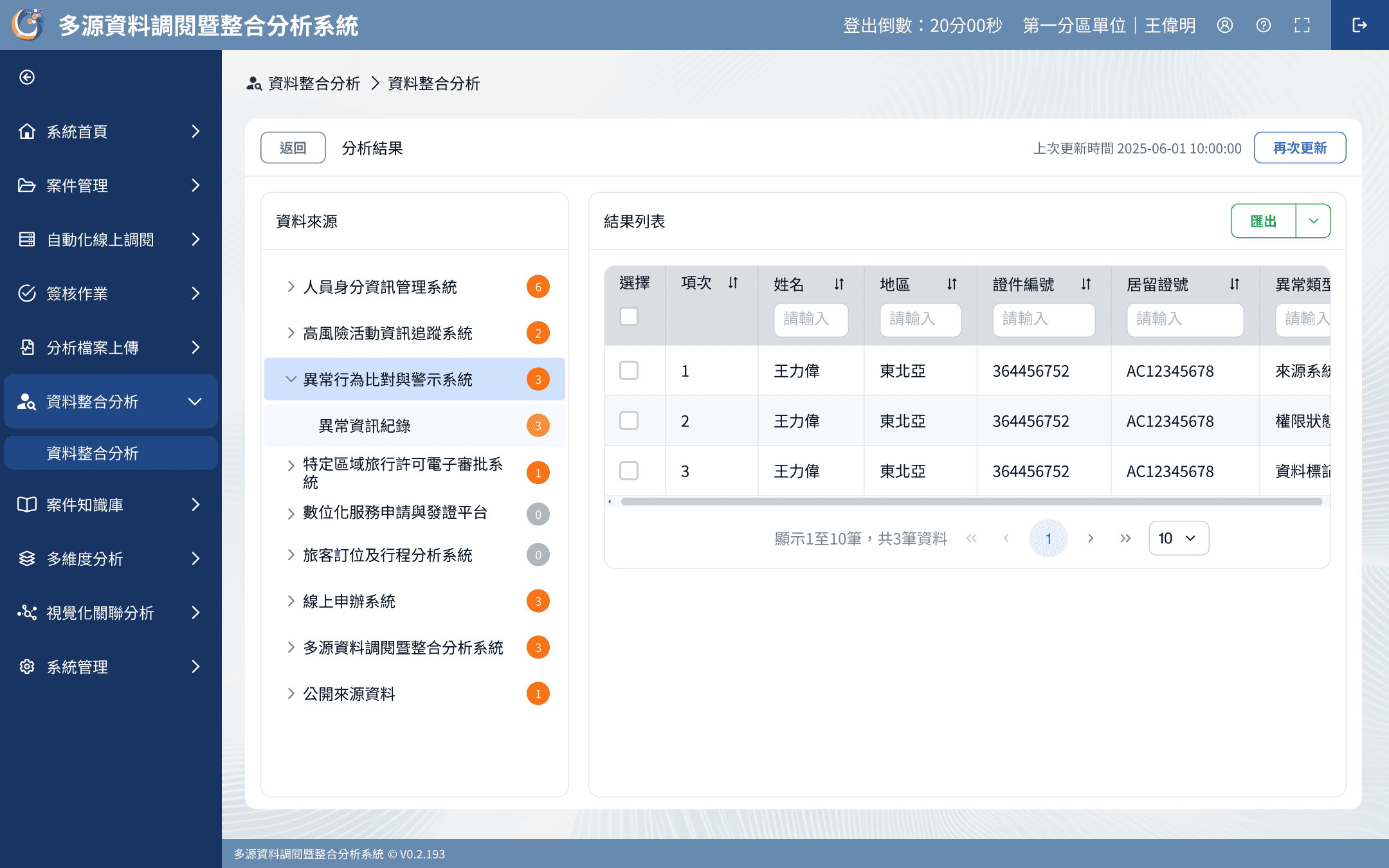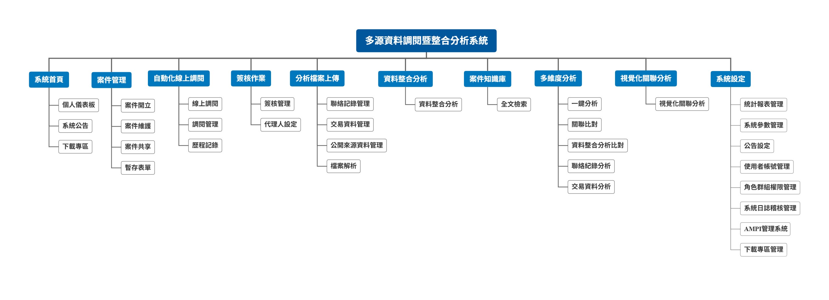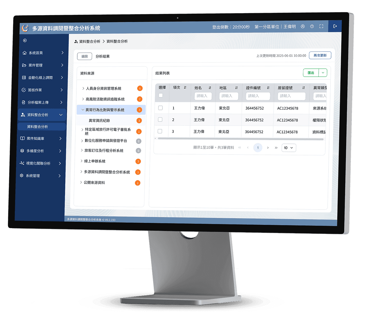 資料整合分析:整合跨系統資訊,可進行多個來源資料查詢與分析交叉比對。